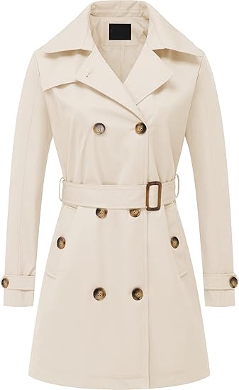Chrisuno Women's Double Breasted Trench Coats Mid-Length Belted Overcoat Long Dress Jacket with Detachable Hood