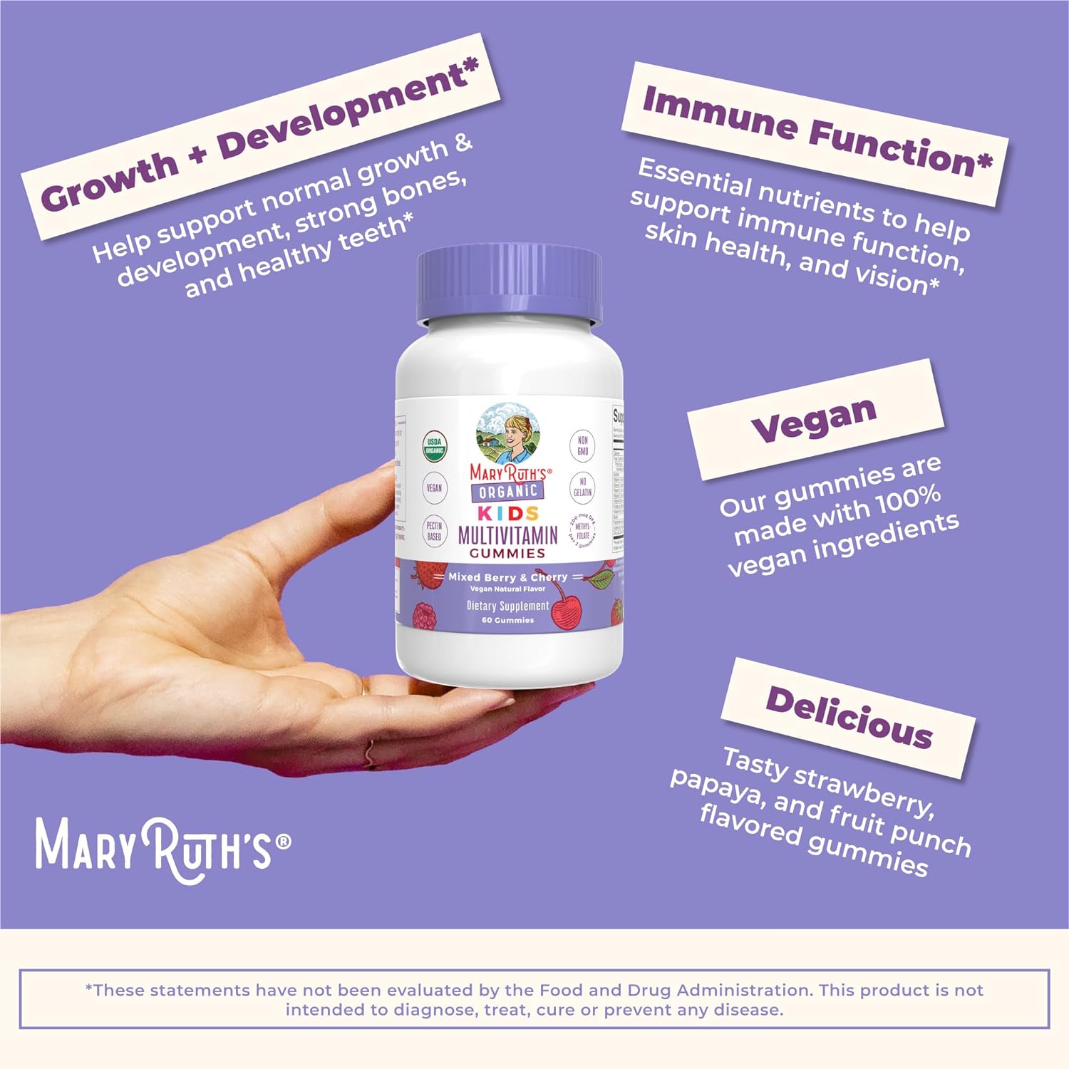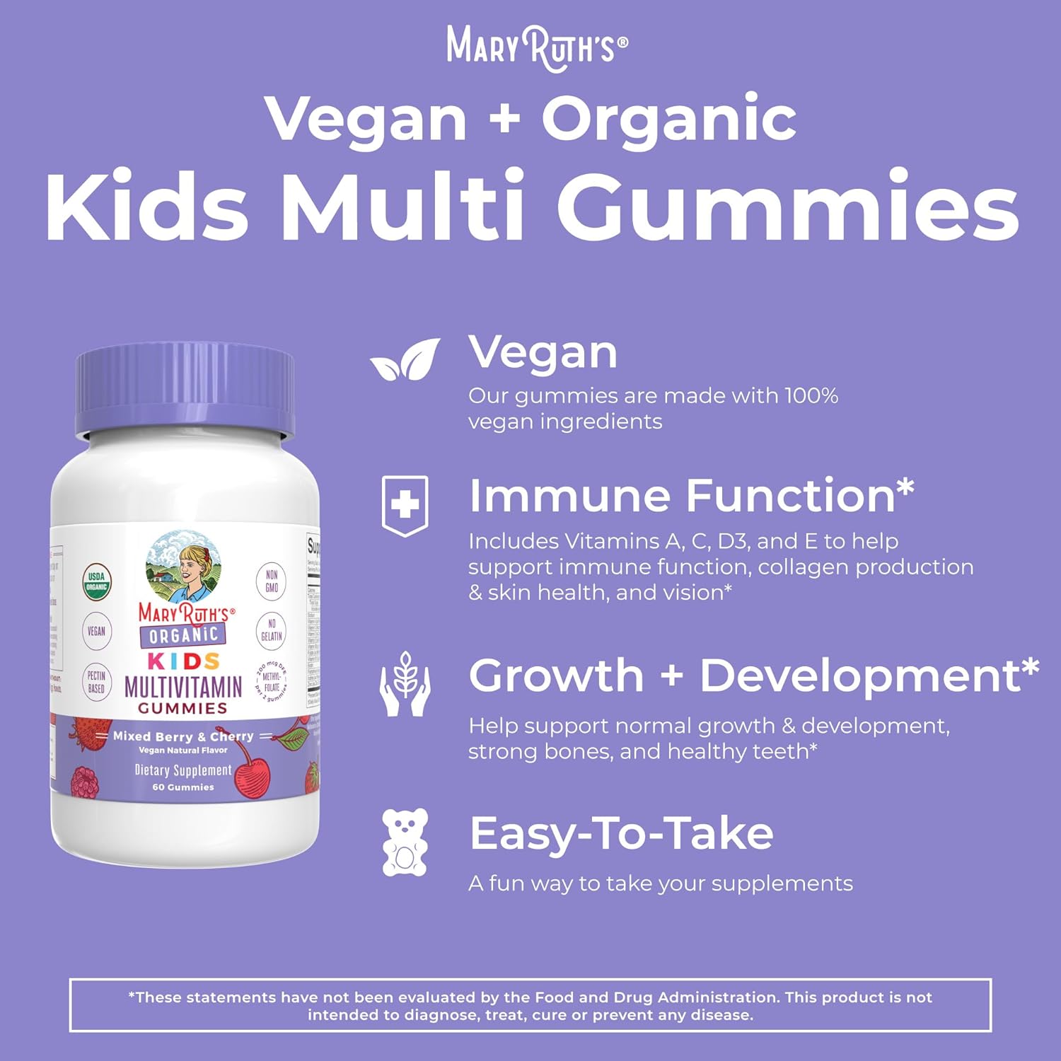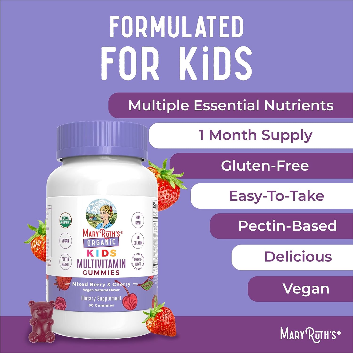 MaryRuth's Vitamin | USDA | Kids Multivitamin Gummy for Ages 4+ | Vegan | Non-GMO | Only 2 Gummies a Day | 60 Count