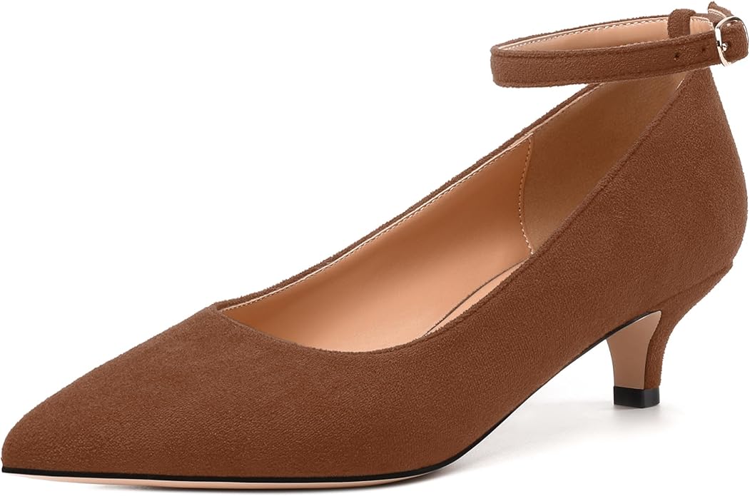 Women's Pumps, Pointed Toe Ankle Strap Low Kitten Heel Shoes, Women's Fashion Buckle Shoes for Office, Party