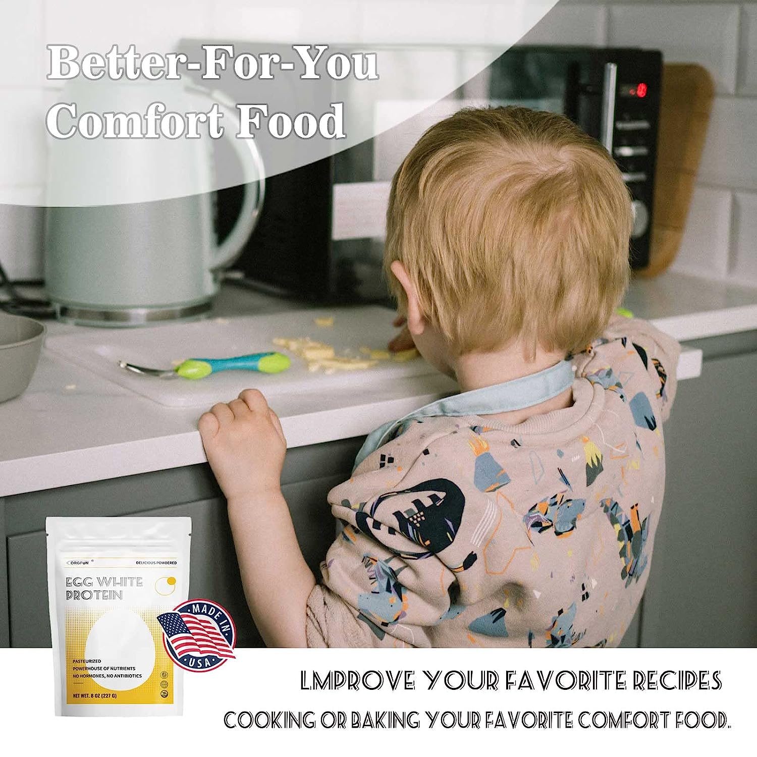 ORGFUN Egg White Powder 8 Oz, Pasteurized Egg White Powder, Gluten-Free, Non-GMO, Made in USA Great for Scrambled Egg Whites