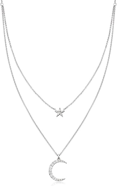 Ross-Simons 0.20 ct. t.w. Diamond Star and Moon Layered Necklace in Sterling Silver