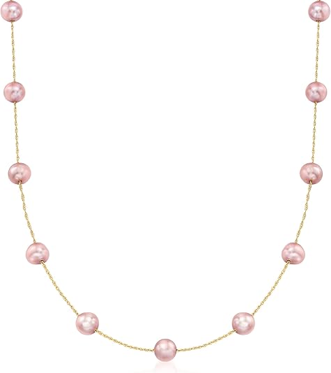 Ross-Simons 6-6.5mm Pink Cultured Pearl Station Necklace in 14kt Yellow Gold