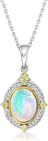Ross-Simons Ethiopian Opal, .10 ct. t.w. Diamond and .18 ct. t.w. Peridot Pendant Necklace in Sterling Silver With 14kt Yellow Gold