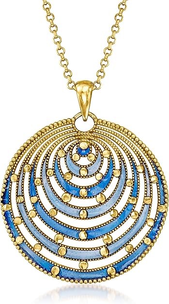 Ross-Simons Italian Blue Enamel Circle Pendant Necklace in 18kt Gold Over Sterling. 18 inches