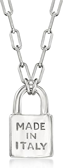 Ross-Simons Italian Sterling Silver Made in Italy Lock Paper Clip Link Necklace