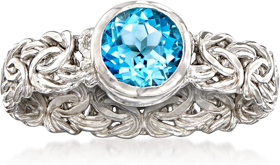 Ross-Simons 1.00 Carat Bezel-Set Swiss Blue Topaz Byzantine Ring in Sterling Silver