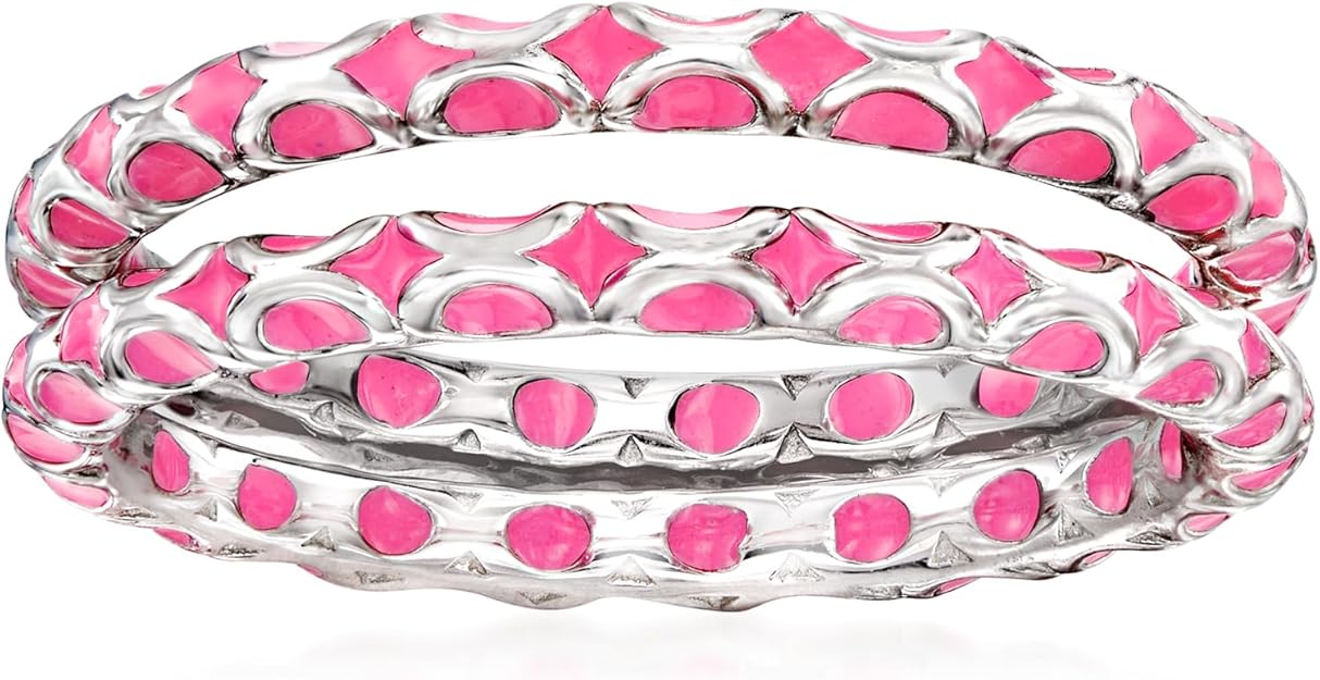 Ross-Simons Pink Enamel Jewelry Set: 2 Eternity Bands in Sterling Silver