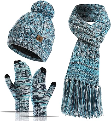 Honnesserry Winter Warm Beanie Hat Scarf and Touchscreen Gloves Set for Womens Skull Caps Neck Scarves with Fleece Lined