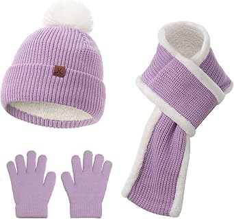 Toddler Beanie Hat Gloves Neck Warmer Scarf Set For Boys And Girls, 3Pcs Kids' Winter Accessories With Fleece Lining