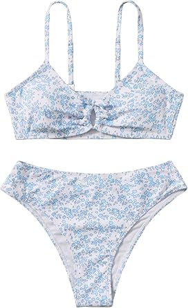 COZYEASE Girls' 2 Piece Ditsy Floral Print Knot Front Ruched Triangle Bikini Swimsuit