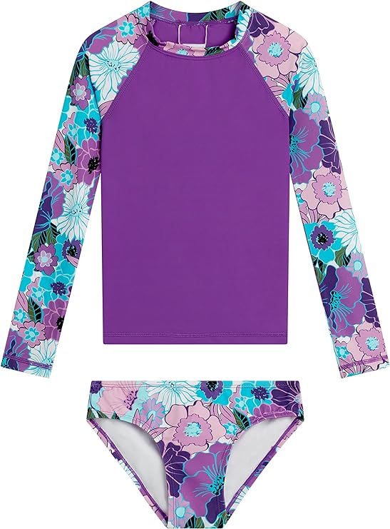 Kanu Surf Girls' Long Sleeve Rash Guard UPF 50 2-Piece Swim Set