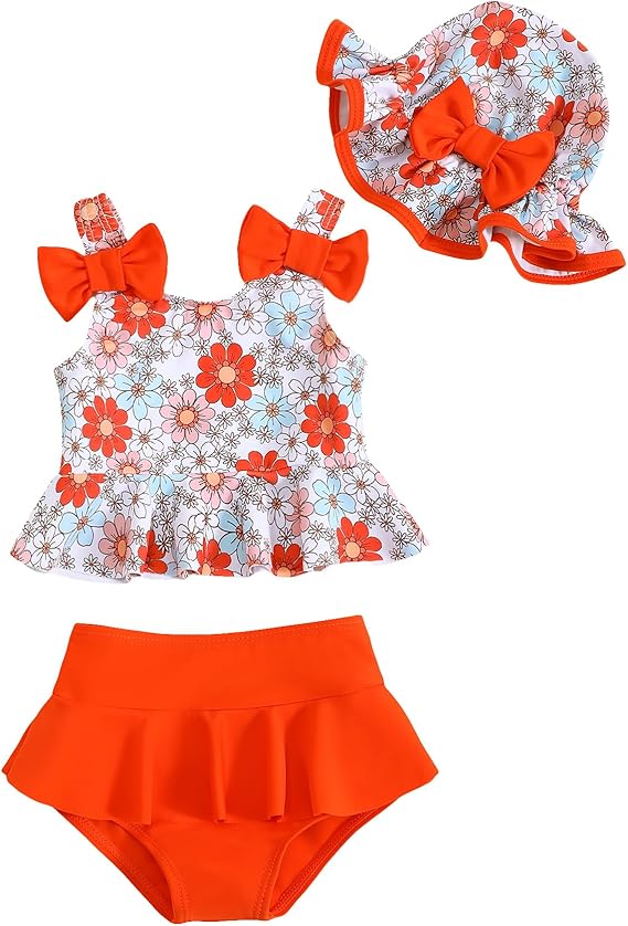 Mioglrie Baby Infant Swimsuit Girl Toddler Bathing Suit Girl Summer Beach Bikini Tankini Swimwear Hat 3-24 Months 2t-5t