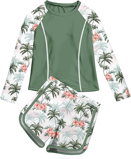Vogseek Girls Rash Guard Swimsuits 2 Piece Bathing Suit UPF 50+ Summer Swimwear Size 7-12T