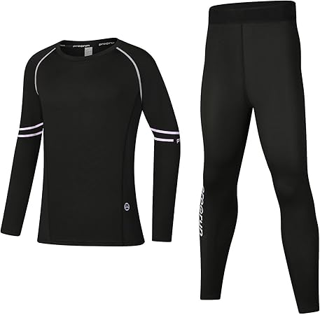 Boys' Girls' Long Sleeve Compression Pant and Shirt Set, Youth Kids Base Layer Sport Athletic Tops Leggings Underwear