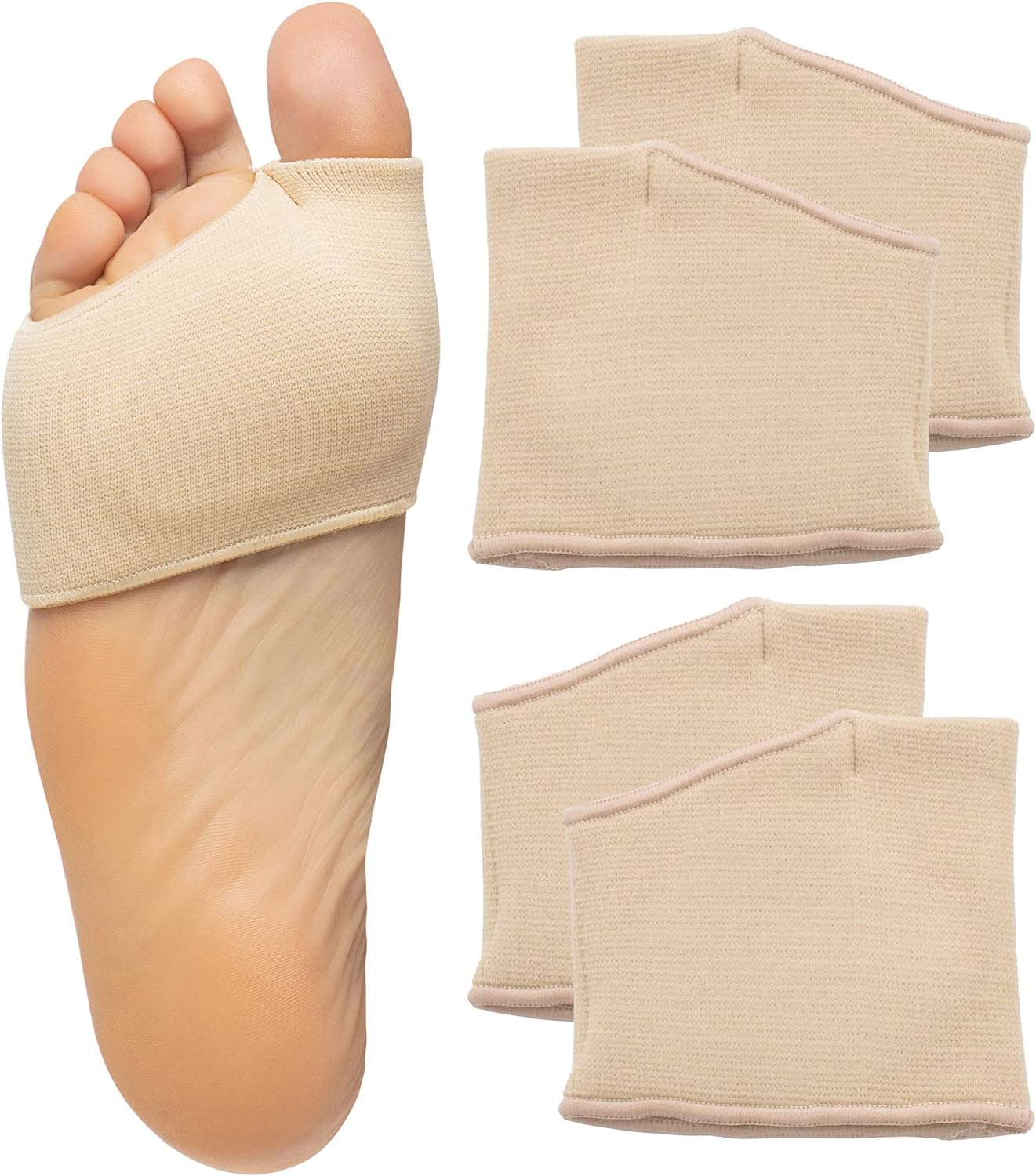 ZenToes Metatarsal Pads for Men and Women - Ball of Foot Pain Relief Cushions for Sesamoiditis, Metatarsalgia, Morton's Neuroma - 2 Pairs Fabric Sleeves with Gel Inserts (Medium, Beige)