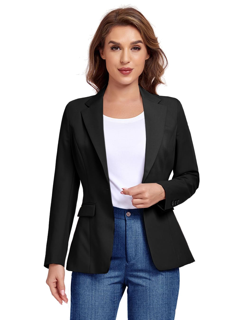• Classic and Elegant Style: The women clothing blazer boasts a classic notched lapel style and a single button closure, effortlessly transforming any outfit into a sophisticated and professional look.
