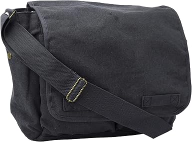 ARMYU Black Original Heavyweight Cotton Canvas Classic Heavyweight Military Messenger Bag + Streamer