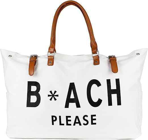 Beach Bag with Vegan Leather Handle, Extra Large Beach Bag for Women Waterproof Sandproof, White