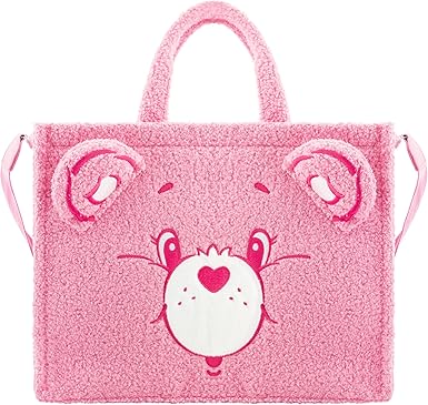 Concept One Care Bears Tote Bag, Cheer Bear Faux Fur Travel Handbag with Adjustable Shoulder Strap and Trolley Sleeve, Pink