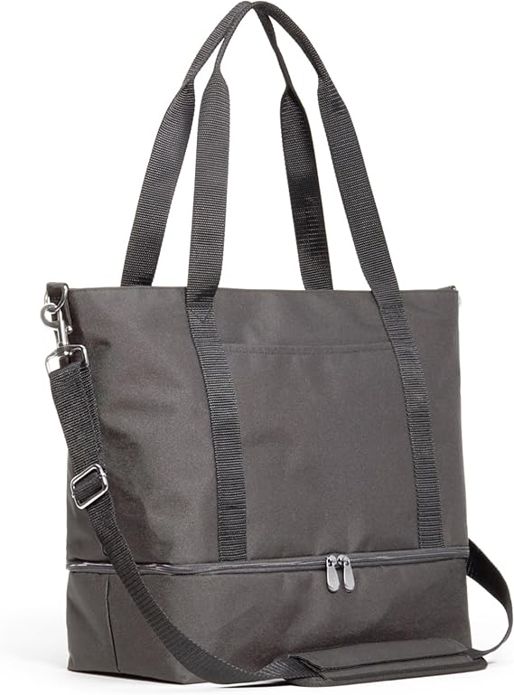 Lo & Sons Catalina Deluxe Tote - Premium Recycled Poly (Travel Bag with Trolley Suitcase Sleeve | Durable Travel Tote Bag | Overnight Weekender Bag | Everyday Work Tote | Stylish Gym Bag), Grey