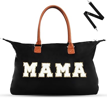 Mommy Bag for Hospital - Nylon Travel Tote Bag for Mom w/Leather Handles, Detachable Strap