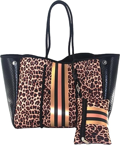 Stylish Neoprene Travel Tote Bag - Large Beach Bag, Gym Bag, Pool Bag, Shoulder Bag with Small Purse