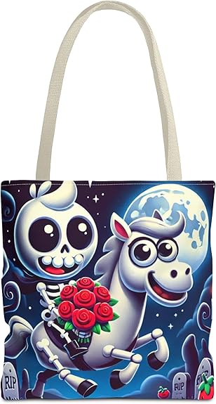 Whimsical Skeleton Rider Tote Bag - Halloween Fun (AOP)