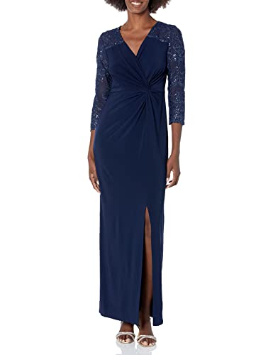 Alex Evenings Women's Long Stretchy 3/4 Sleeve Knot Front Column Dress, Navy Illusion, 18