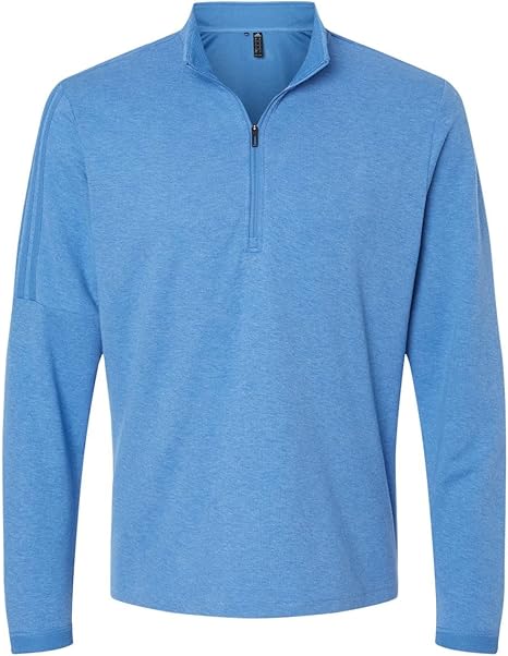 adidas Mens 3-Stripes Quarter-Zip Sweater, L, Focus Blue Melange