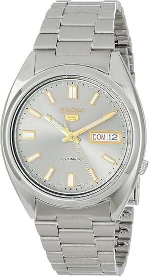 SEIKO SNXS75 Automatic Watch for Men 5-7S Collection - Striking Silver Dial with Day/Date Calendar, Luminous Hands, Stainless Steel Case & Bracelet