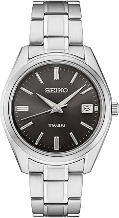 Seiko SUR375 Watch for Men - Essentials - Black Dial with Sunray Finish, Date Calendar, Titanium Case & Bracelet, Sapphire Crystal, and 100m Water Resistant_„_