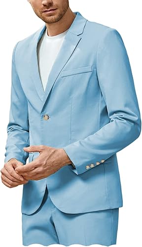 Men Suits Slim Fit 2 Pieces Solid Prom Tuxedos Business Jacket +Pants Linen Lightweight and Breathable Wedding Grooms Parties