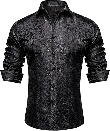 DiBanGu Mens Shirt, Paisley Floral Dress Shirt Long Sleeve with Collar Pin Brooch
