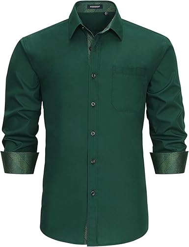 HISDERN Mens Business Dress Shirts Long Sleeve Casual Button Down Shirt Formal Inner Collar Contrast Shirt for Men Wedding
