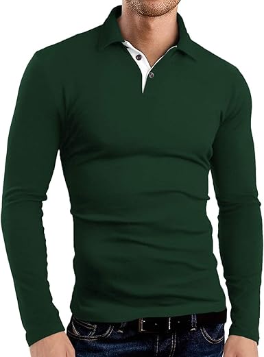 KUYIGO Men's Short Long Sleeve Polo Shirts Casual Slim Fit Basic Designed Cotton Shirt Tops