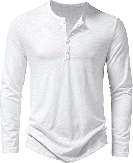 Men's Casual Front Placket Basic Long Sleeve Henley Shirt Muscle Workout Athletic Tee Tops