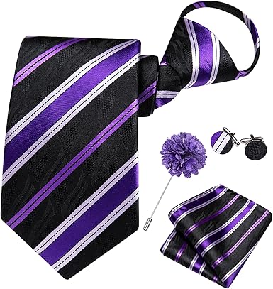 Hi-Tie Mens Zipper Tie Set Lapel Pin Pocket Square And Cufflinks Formal Business Wedding Adjustable Necktie