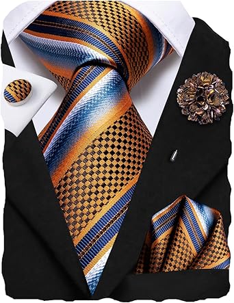 Hi-Tie Silk Ties for Men Woven Mens Ties with Pocket Square Cufflinks Business Formal Necktie Lapel Pin Set