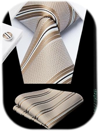 HISDERN Ties for Men Stripe Plaid Tie Classic Necktie Pocket Square Cufflinks Set for Formal Wedding Business Party