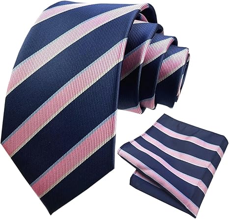 Secdtie Men's Striped Tie Handkerchief Woven Classic Formal Necktie and Pocket Square Set