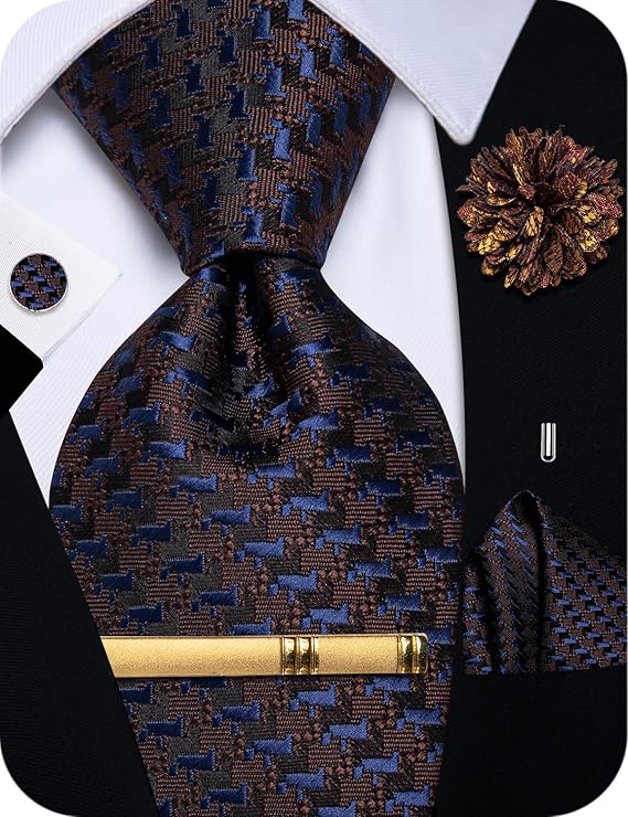 Silk Paisley Floral Tie and Pocket Square Cufflinks with Lapel Pin Sets for Men 5PC Wedding Party