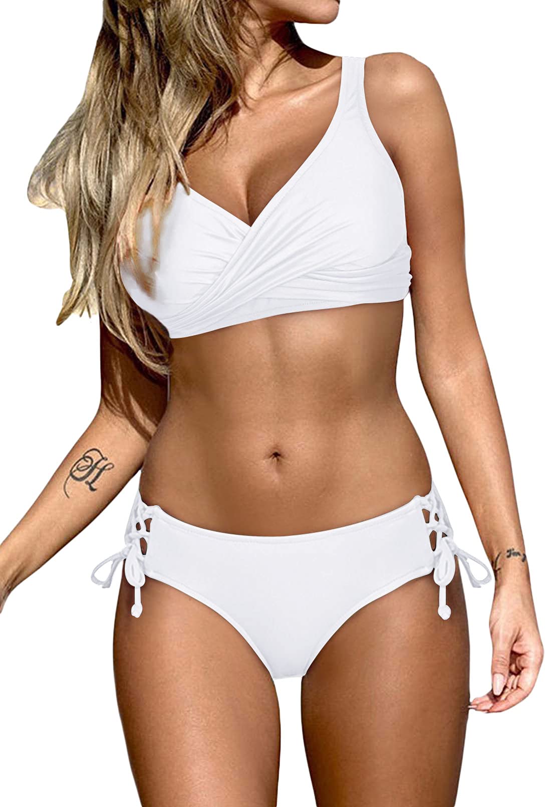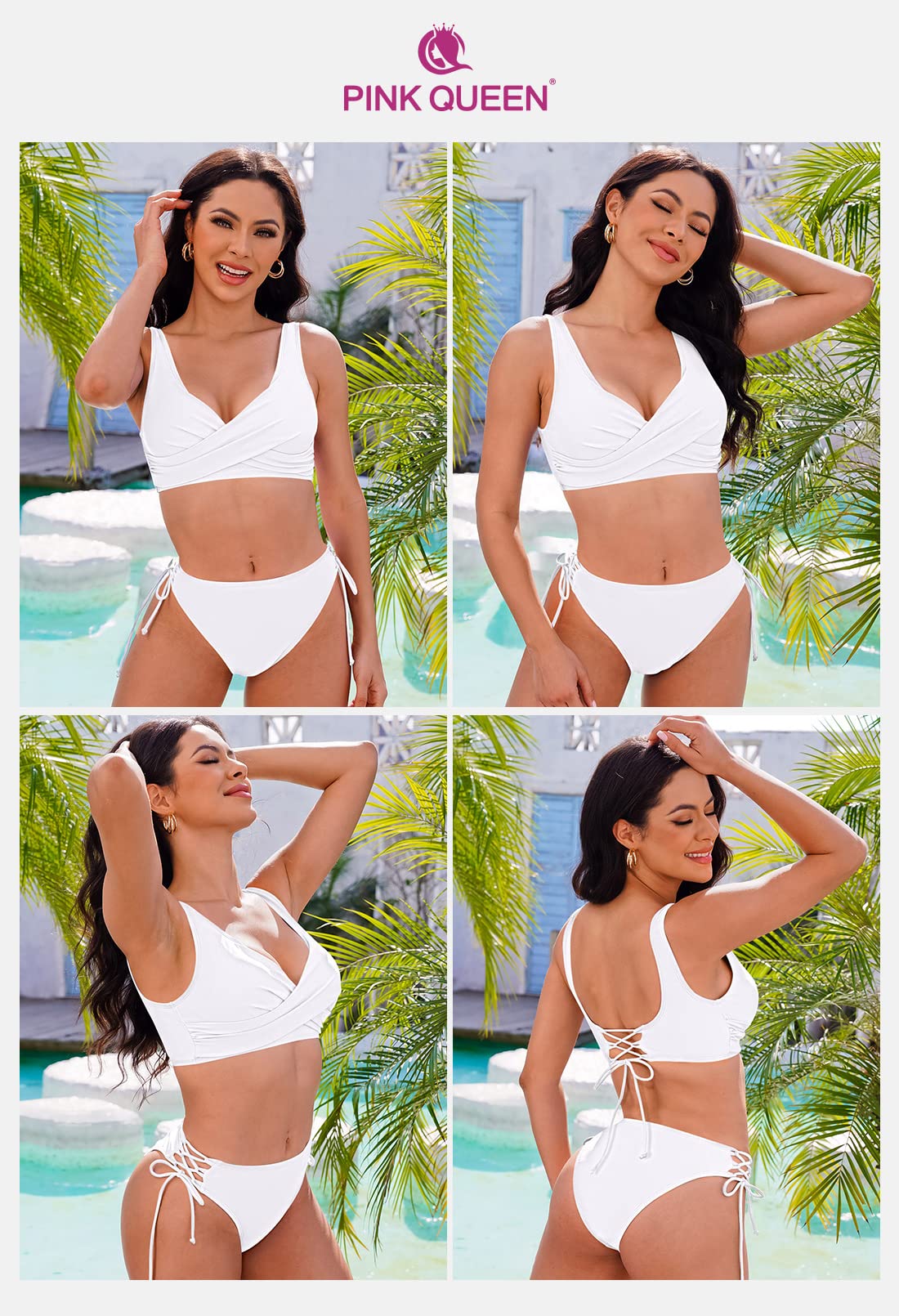 Pink Queen Women's Bathing Suit Lace Up Two Piece Bikini Swimsuit Wrap Push Up Swimwear White XL