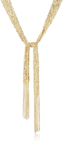 Ross-Simons Italian 18kt Gold Over Sterling Silver Mesh Tie Necklace. 32 inches