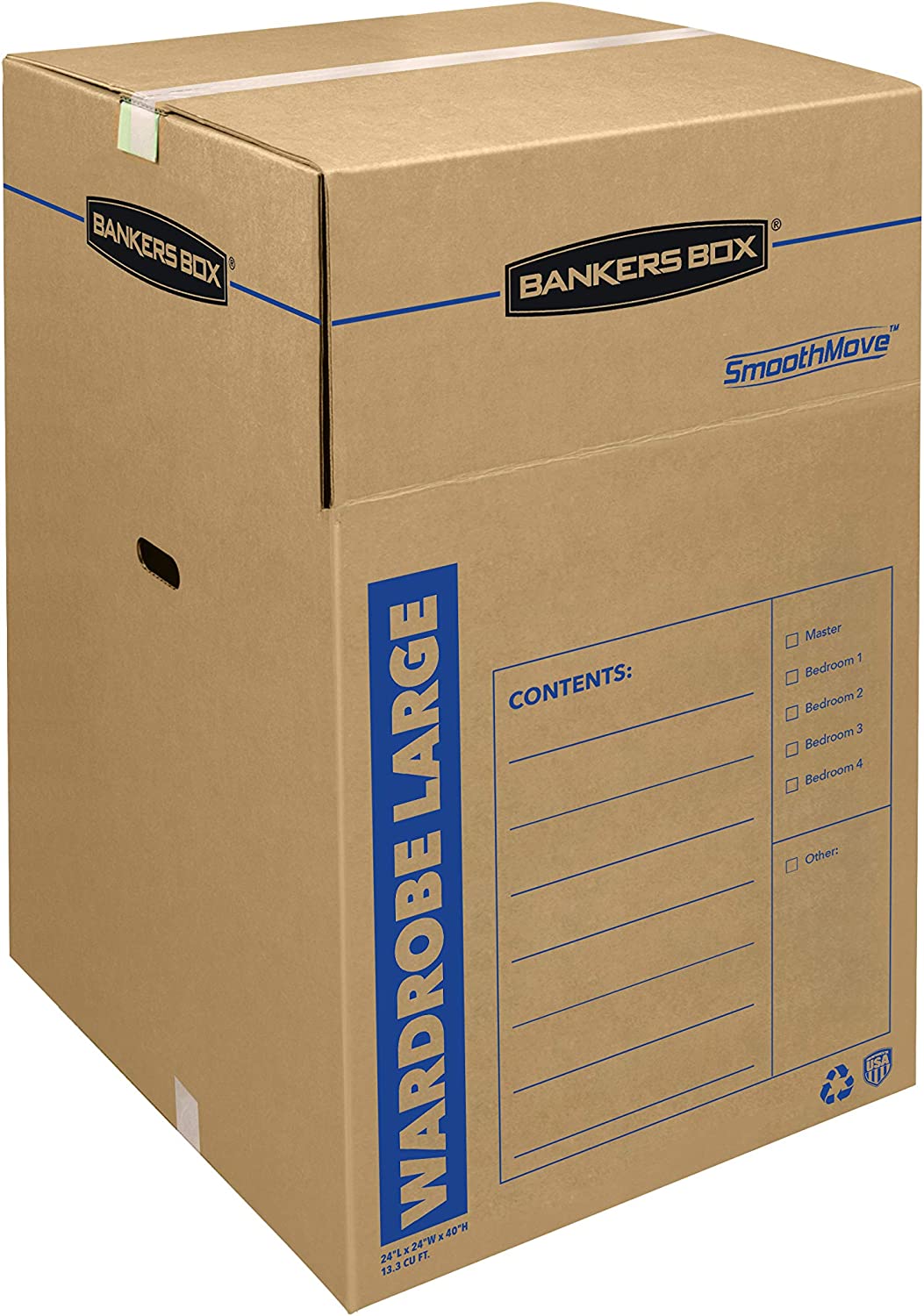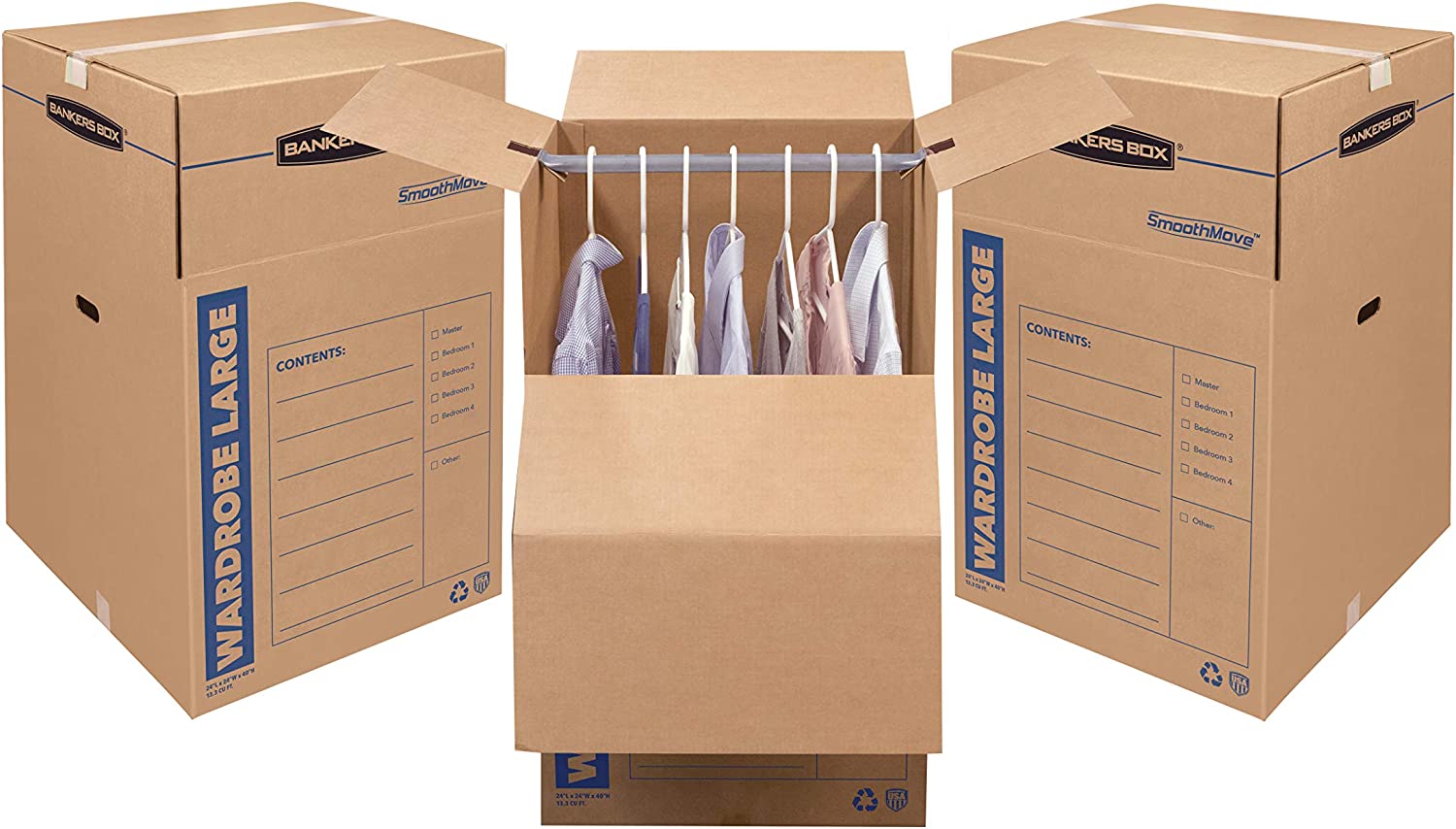Bankers Box SmoothMove Wardrobe Moving Boxes, Tall, 24 x 24 x 40 Inches, 3 Pack (7711001)