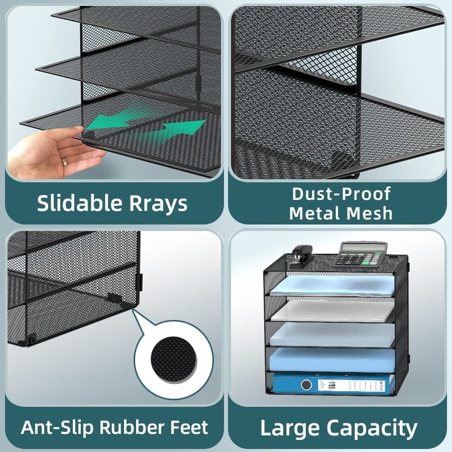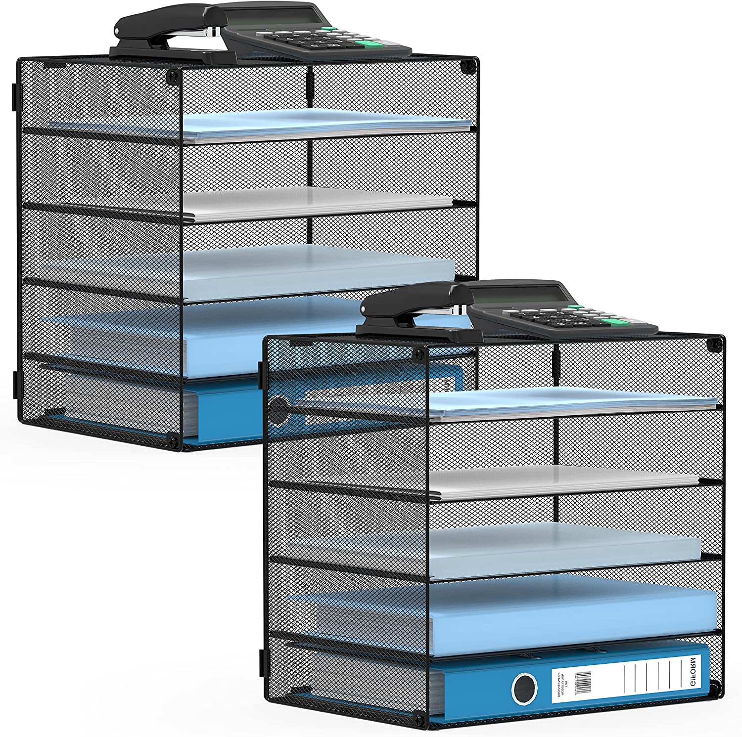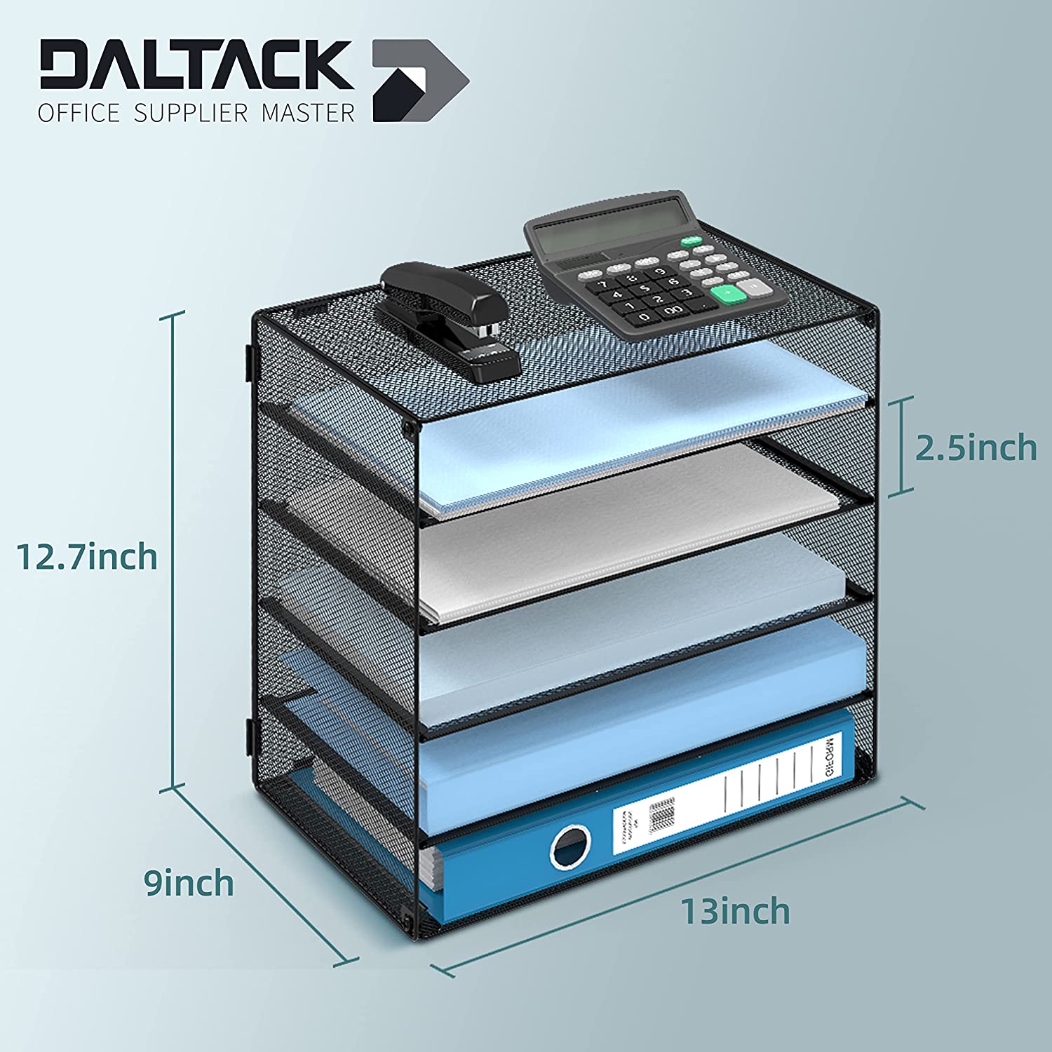 DALTACK 5 Tier Letter Tray Paper Organizer for Desk Mesh Metal File Organizer for Home & Office Black 2 Pack