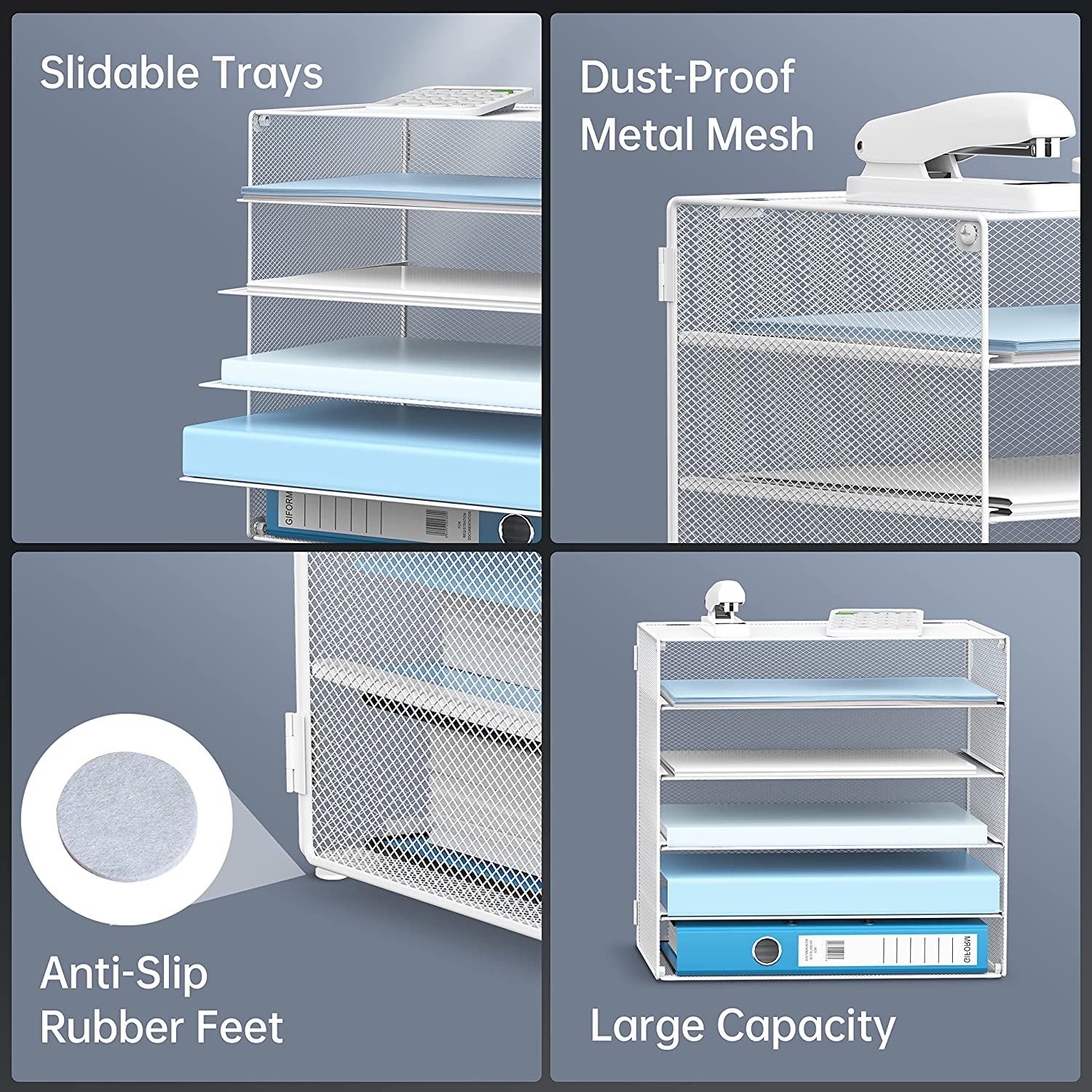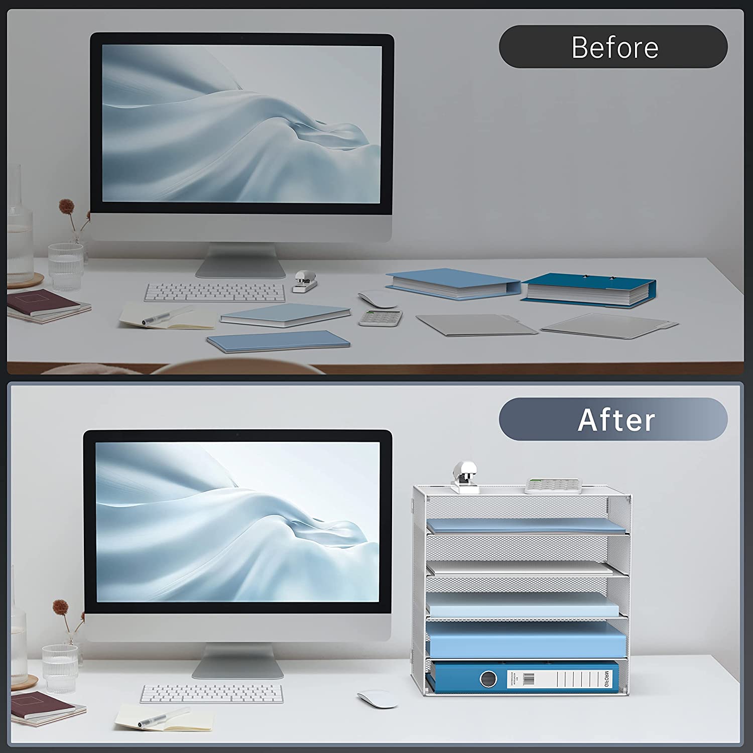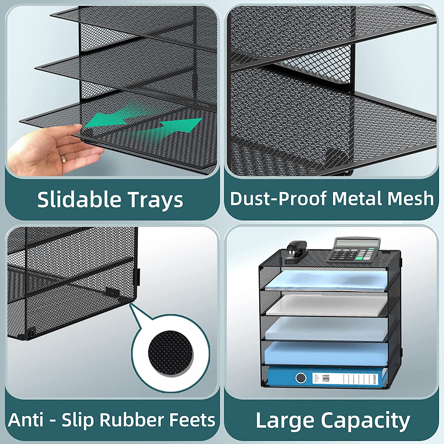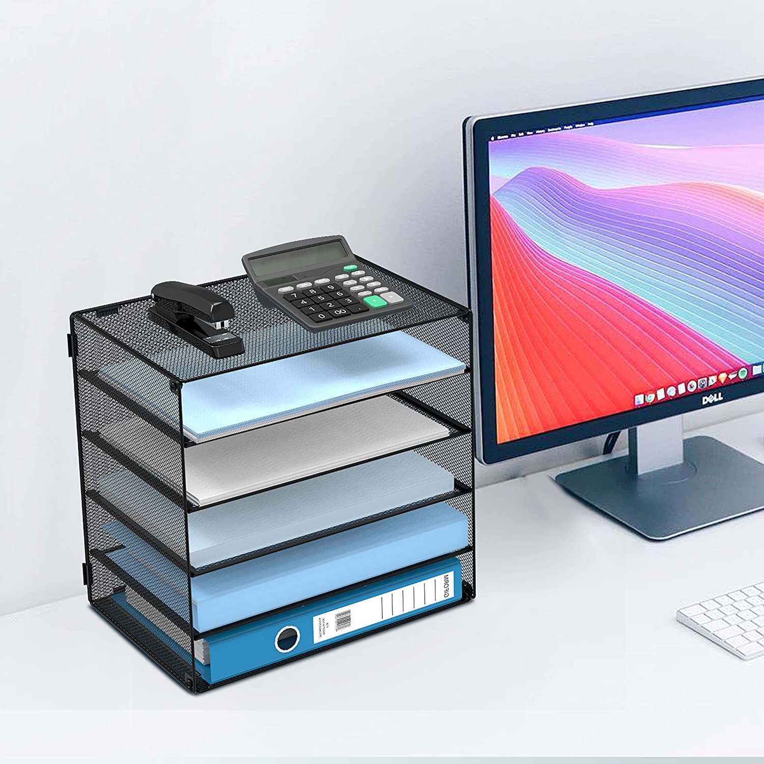 • 【Humanize Design】Five-tier desk stackable file tray, help you identify the contents of each compartment quickly. full advantage of your vertical space and keep your desktop clear.
