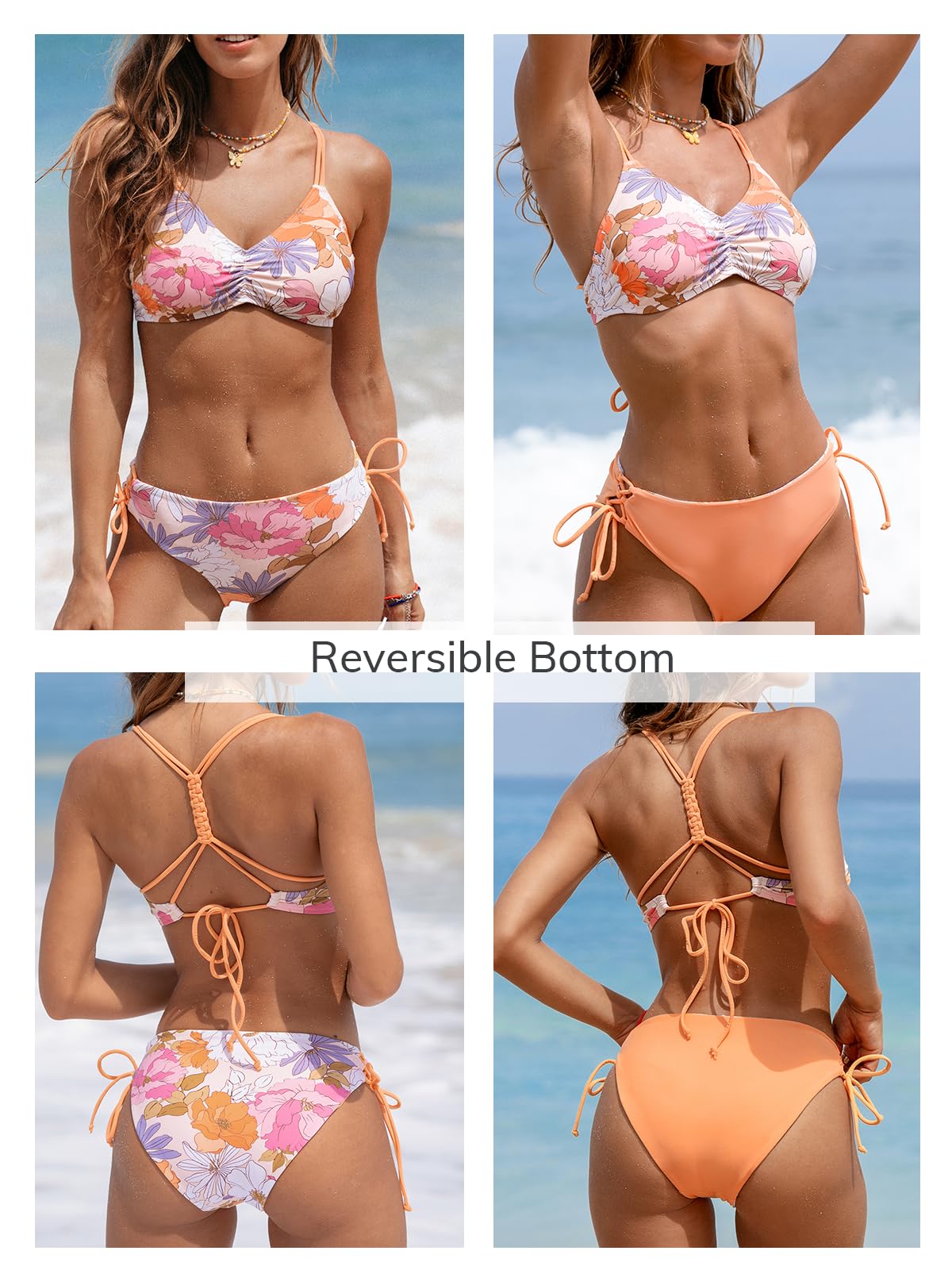 CUPSHE Women's 2 Piece Bikini Set Back Braided Straps with Reversible Bottom,M