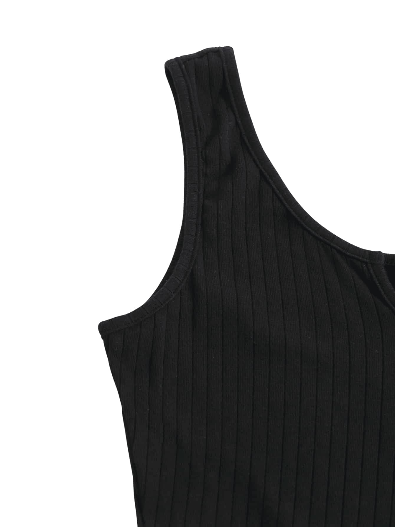 SOLY HUX Women's Summer Sleeveless Belted Tank Romper Short Jumpsuit Black L