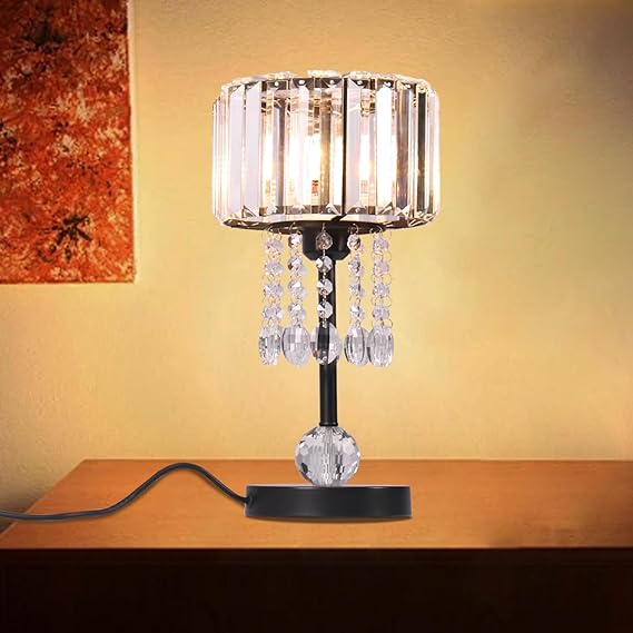 FRIXCHUR Crystal Table Lamp Beside Lamps Black Desk Lamp Small Nightstand Lamp for Bedroom Living Room Dining Room Office Dorm, 7.67 Inch