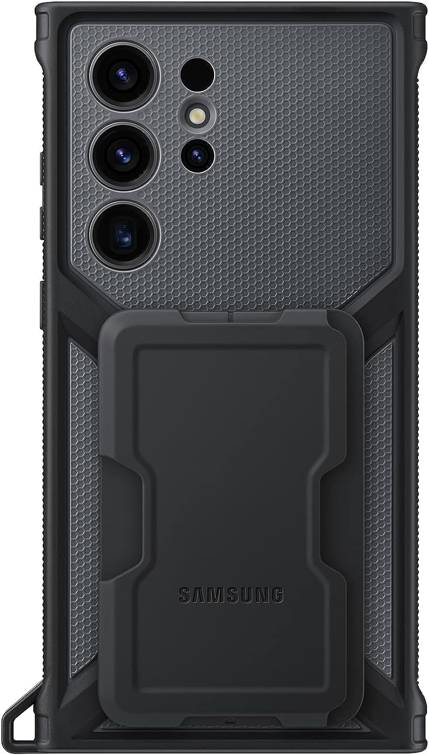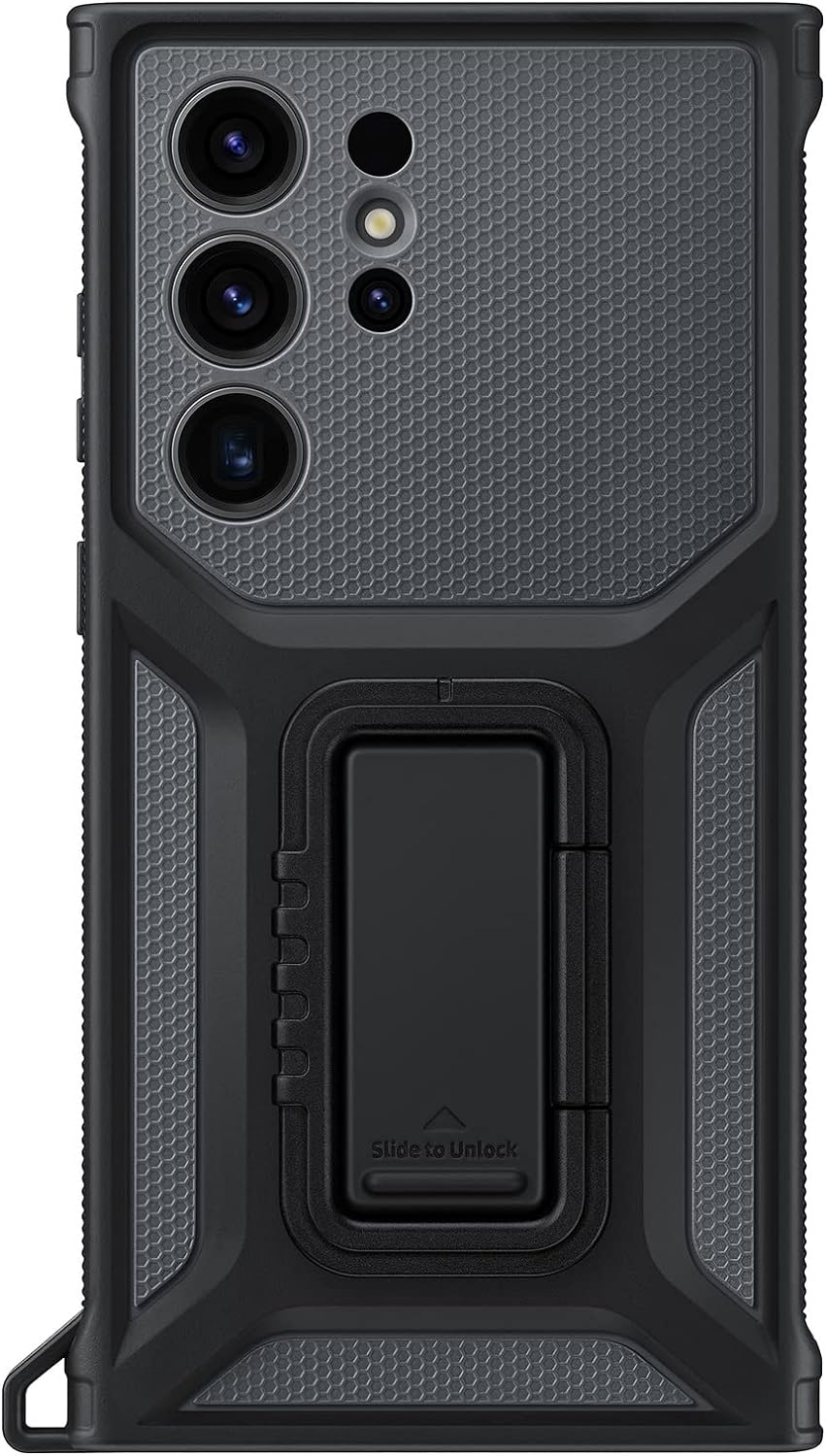 Help protect your phone from falls, bumps and scratches with the Rugged Gadget Case. With a sturdy design and comfortable grip, the Galaxy S23 Ultra Rugged Gadget Case helps keep your phone in your hands.**** *Tested to MIL-STD-810G Transit Drop standards, for drops from a height of 1.5 meters to a steel surface, in temperatures between 15°C to 35°C with 0–80% relative humidity. Standard is according to accredited test results; performance may vary depending on actual usage conditions and other factors. **Card slot fits a maximum of two cards. ***Additional attachments sold separately. Products may vary by carrier and retailer. ****Galaxy S23 Ultra sold separately.